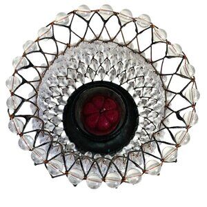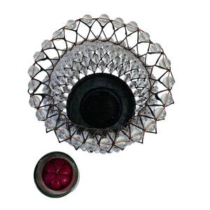 vintage candle holder, glass beads, wire frame, velvet base, votive candle, elegant decor, antique look, home decor, vintage charm, unique gift, timeless design, old-world, classic style