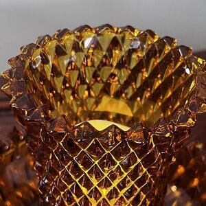 Brilliant diamond cut amber colored glass 1980s/90s
