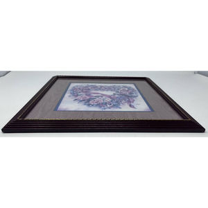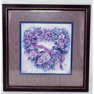 Home Interiors Leisha Floral Heart Wreath Bird Framed Picture 14" Wide x 14" Long
