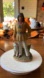 Charming figurine of a Native American man in a tan outfit with a white dog. Adds cultural charm to any space.