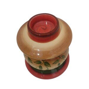 Item is pre-owned and in very good condition with no cracks or chips. This is a beautiful handpainted ceramic Sunflower lamp candle holder where the light shines through the holes in the shade. This is nice & thick with non slip/scratch pads on the bottom. Lamp measures 7.5" tall x 5.5" wide.