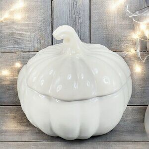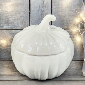 Home Interiors Stoneware Ceramic Pumpkin Shape Canister Cookie Jar Container