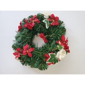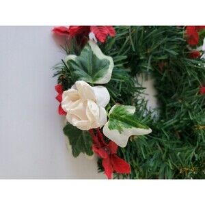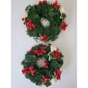 Vintage set of 2 red Victorian roses candle stick holders. Flowers are made of silk. Each measures 9 x 9