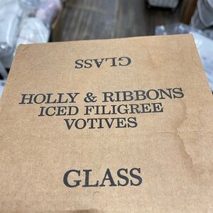 Home Interiors set of 4 Holly & Ribbon clear votives