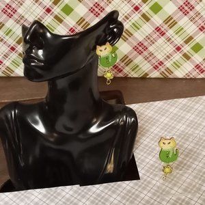 Home Made Handmade Wood & Metal Green & Yellow Button Earrings #40