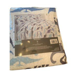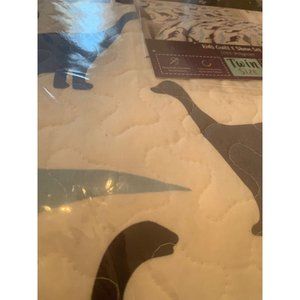 Home & Main Kids Quilt and Sham Set White Blue Dinosaur Pattern Twin Size