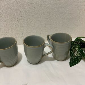 Home Mugs Coffee Cup Stoneware studio Sage Green 4” tall Lot of 3 A11