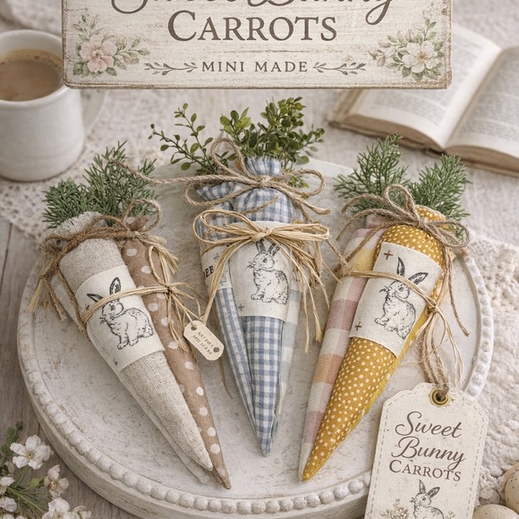 Add charm to your gatherings with the decor set. Featuring delightful designs in tan, blue, and pink, these pieces bring a whimsical touch to any party setting. Easter Carrot Bundle (Set of Three) $25