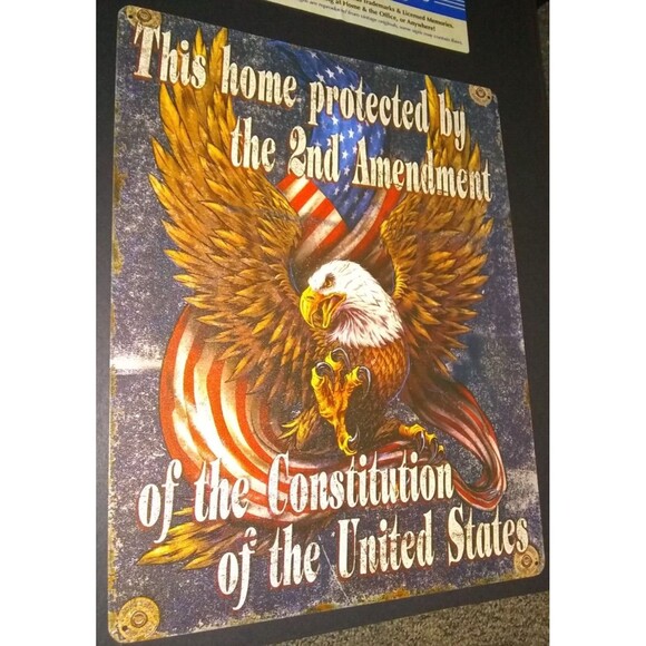 Item: Home Protected by Second Amendment Eagle Tin Metal Sign Man Cave Garage 12"x15"