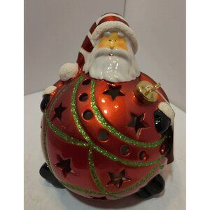 Home Reflections Ceramic Luminary Santa Ornament w/ Colorful Lights or Candle