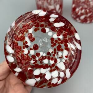 Home Studio Jolly Confetti Glasses Set 4 Red White Bubbles Splatter Handblown