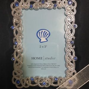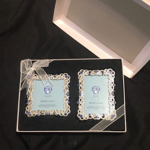Matching pair of small silver and blue rhinestones beautiful little picture frames. 1st one is 2.5 x 2.5 / 2nd one is 2x3.New in the box.