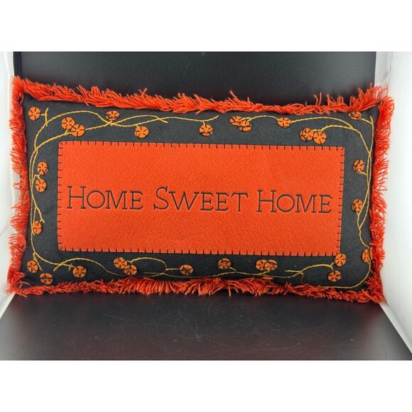 Add a touch of warmth and charm to your home with this beautifully crafted ‘Home Sweet Home’ pillow. Featuring a rich red center against a soft black backdrop, it's perfect for cozying up your living space. The delicate embroidery and fringe detailing elevate its style, making it a standout piece. Ideal for any room, it serves as a comforting reminder of home. Perfect as a gift or to brighten your decor, this pillow combines comfort with character effortlessly.