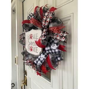 Home Sweet Home Paw Print Pet Dog Cat Mesh Wreath, Every Day Year Round Decor