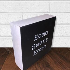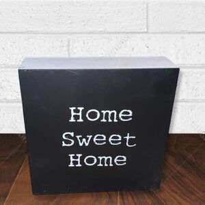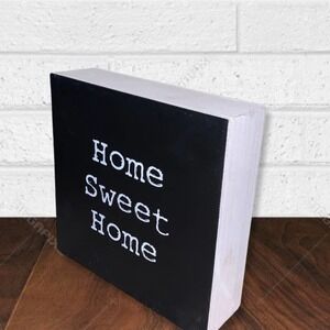 Home Sweet Home wooden box sign with chalk paint finish. Great for tiered trays, shelf, porch, entryway console table or anywhere. 5”x 5” x 1.5”