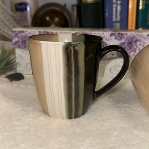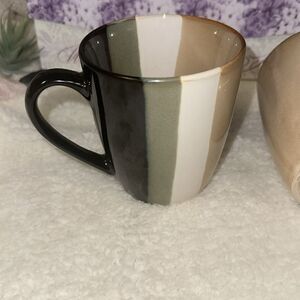 Home Trends Black Tan Green Ivory Two Matching Coffee Tea Hot Chocolate Mugs