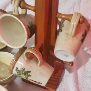 Elegant dinnerware set with palm tree design. Includes plates, bowls, and mugs. Perfect for tropical-themed dining.