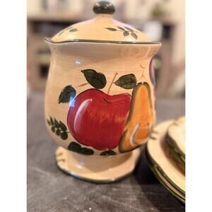 Home Trends Fruit Harvest 5 Pc Set Plates & Cookie Jar Hand Painted Stoneware