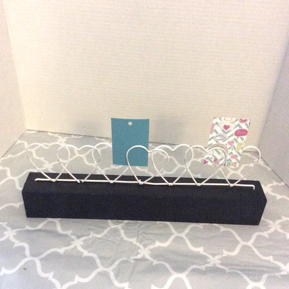 Home decor for photos or notes. This measures 14 1/2” with 7 wire distressed hearts.