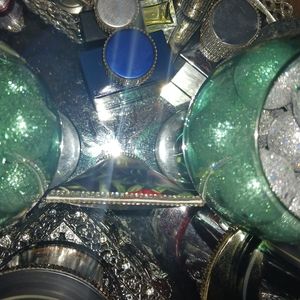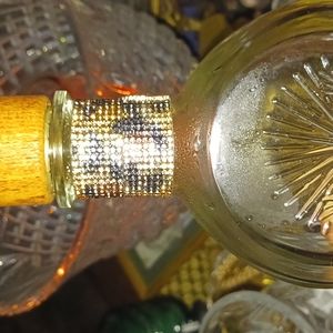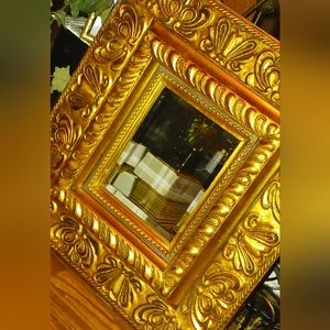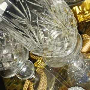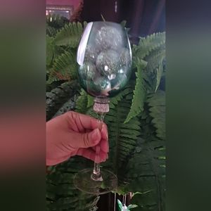Crystal emerald wine bling glasses and antique gold beveled glass mirror