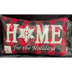 Home for The Holidays Red Black Plaid Throw Pillow - NEW