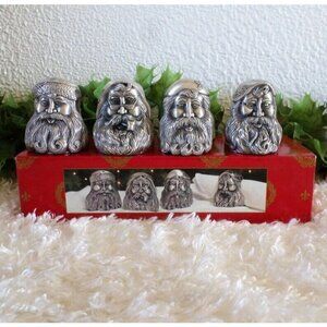 Home for the Holidays Vintage Santa Sliver Metal Napkin Rings Holders Set Of 4