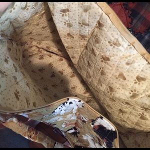 Handmade dog tote with zipper. Smoke free home. 17"L x 19"W. Straps approximately 10" from top of the bag.