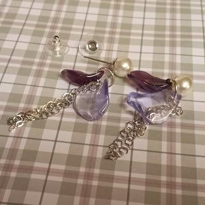 Home made/handmade Metal Dangle Stud Earrings with Acrylic Petals #67