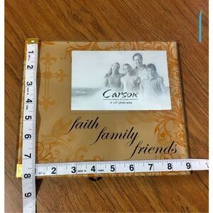 New no tags, 9”X8” with 4” X 6” picture area, faith, family, friends graphics, see measurements for custom fit.