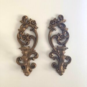 Beautiful vintage HomeCo Hollywood Regency gold wall sconces. These are in great vintage condition with no chips, missing paint or broken pieces. Beautiful set to add to your home in the LR, bedroom or DR!