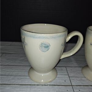 Home Studio Shoreline Collection Footed Mugs Seashells Nautical Beach Ocean. Has some wear from age use and storage. See pictures. Sold as is.
