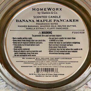 NEW - HomeWorx by Harry Slatkin Banana Maple Pancakes Scented 4-Wick Candle 18 oz. Harry Slatkin has some of the best candles anywhere, and this one is no exception. Not only a beautiful container and lid, but a wonderful scent with 4 wicks and his candles deliver the most luxurious fragrance around.