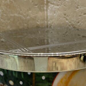 - Collectible glass vessel with decorative silver-tone metal lid embossed with Harry's monogram.