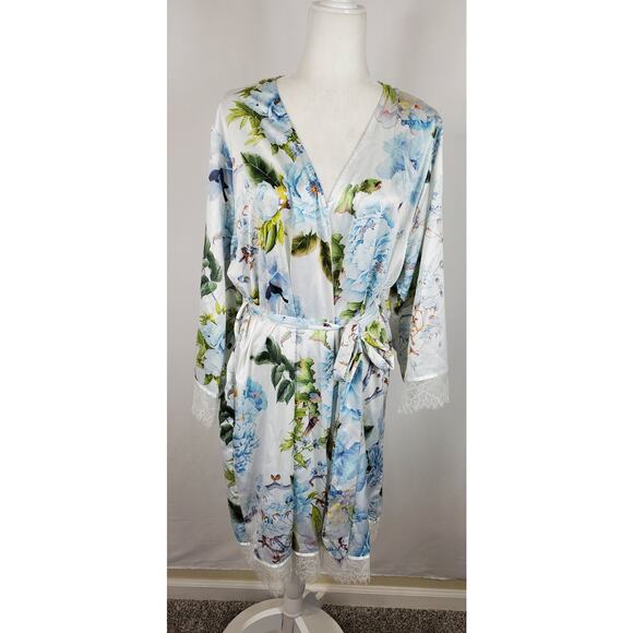 Homebodii Curve Blue Floral Lace Trim Robe Womens