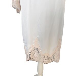 Excellent condition white satiny dressing robe from Homebodii sold at Nordstrom and on REVOLVE. “Bride” embroidered in pink script on the back. Blush light pink lace trim accents. Belt tie closure. Size Small. #bridal #wedding