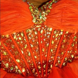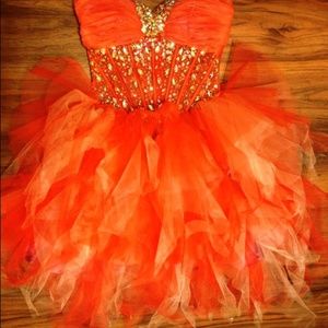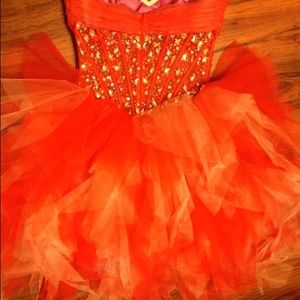 Short orange and white tulle dress with a sweetheart sheer jeweled top, never worn and in perfect condition, the size is a 4, but it runs small