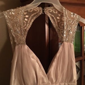 Worn once, great condition. No tears or holes. Beautiful beading and open back.