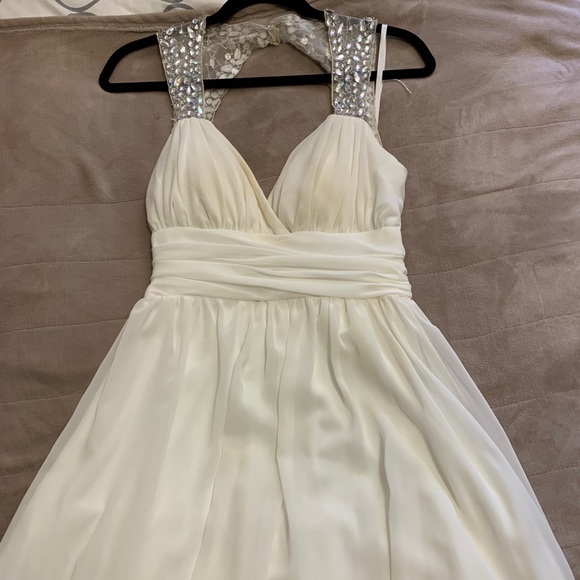 White homecoming dress with jeweled straps