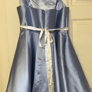 Beautiful light blue zip-up homecoming dress with pockets!! The gemstone tie is separate but will come with the dress! Worn once, smoke free home.