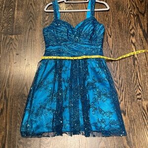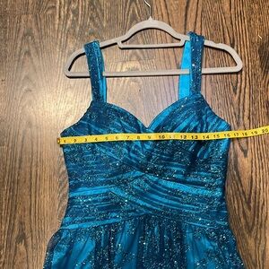 Stunning blue dress with glitter. Perfect for special occasions: Holiday, New Year's, Prom, Homecoming, Quinceanera,Sweet Sixteen.