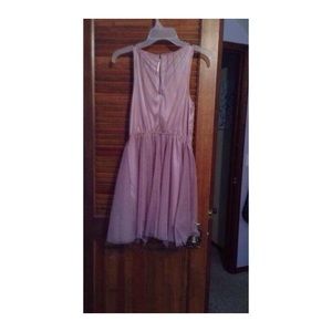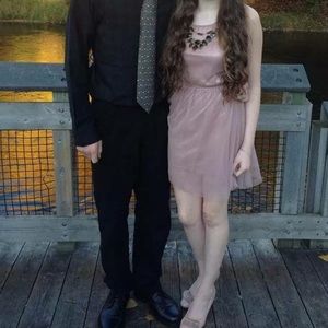 Super cute tan/peach/nude color. We attached the necklace onto the dress to give it some flare, but can easily be taken off. Shoes don't come with, but I will be posting them in another sale. Only worn once and such a comfortable dress. Open to offers. Fits sizes 2-5 ish.