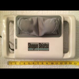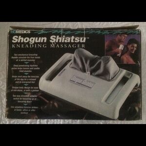 Enjoy a relaxing shiatsu massage anytime and anywhere with this portable plug-in device featuring a comfortable gray kneading pad. Easy to use with convenient handles. Box a bit scuffed but massager itself in pristine condition with original packaging and paperwork (including an unused warranty card) and appears never to have been used.