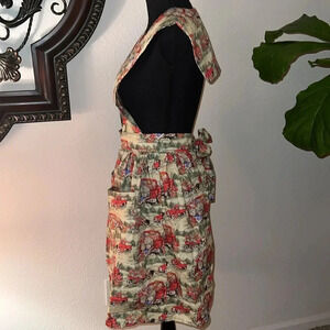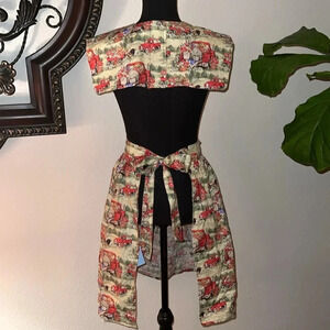 Homemade Adult Women’s Apron Antique Red Flower Truck Cooking Baking