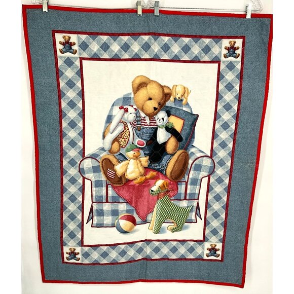 Homemade Baby Quilt With Toy Bear & Friends Pattern Approximately 34" x 44.5"