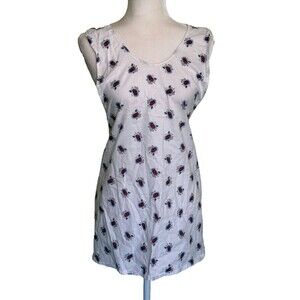 Homemade Bib Apron White w/Red Flowers Cottage Kitchen Cotton No Pockets
