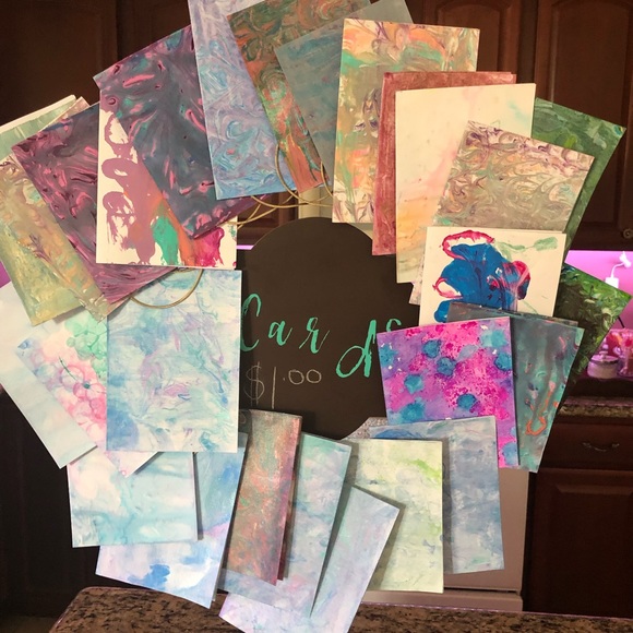 Homemade Marbled cards. Comes with Envelope. Can be stamped with Occasion (Birthday, Thanks, Get Well) etc. I can write your message and mail for you with hot wax seal of your choice on the back. Stamp included in price or free pick up from Surprise. Shipping depends of quantity. Single cards are $3, or 4 for $10.