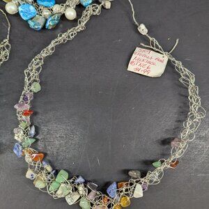 Homemade Crochet Jewelry Wire Necklace with Multicolor Beads 23" Long Lot of 6