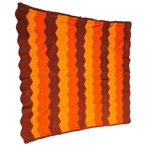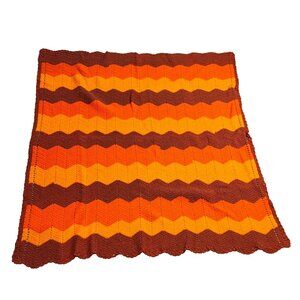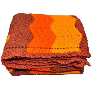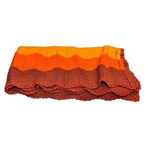 Homemade Crocheted Chevron Zig Zag Afghan Throw Blanket Retro Brown 59" x 55"