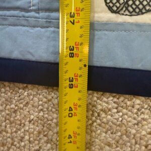 This beautifully crafted crib blanket is the perfect addition to any baby boy's nursery. Handmade with high-quality cotton material, it provides a soft and cozy spot for your little one to rest. The blanket features a police/fire/dump truck theme with exquisite embroidery that adds a unique touch to the design. Measuring [insert dimensions], this blanket is designed to fit perfectly in a crib and is suitable for boys. Its multicolor design is perfect for a baby boy's nursery, and the embroidered features make it a great gift for any new parents.