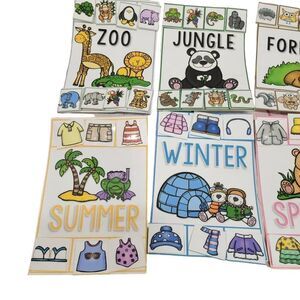 Homemade Matching Velcro cards, special needs teaching, seasons. 8x5" cards. Laminated. 5oz